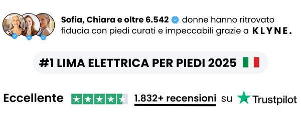 KLYNE – Lima Elettrica Piedi™ è certificata CE, testata su tutti i tipi di pelle. Nessun prodotto chimico: solo un’abrasione delicata e controllata.